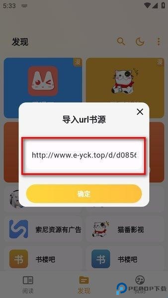 贴入书源地址,点击“确定”;