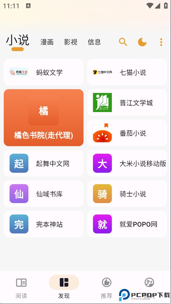 到这来就可以开始使用了,小说、漫画、影视书源都有,直接进入对应的就可以进行观看了;