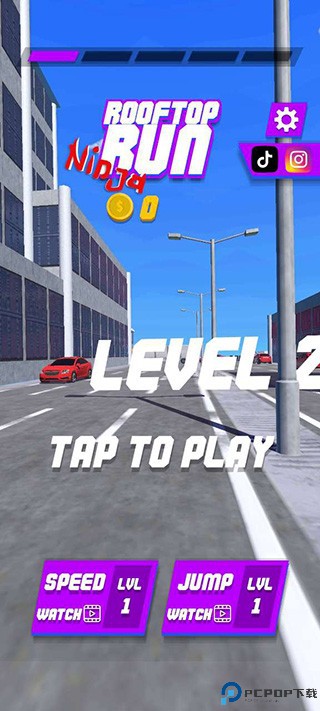 1、打开屋顶忍者跑官方版,进入游戏主界面,选择【TAP TO PLAY】选项即可开始游戏,
