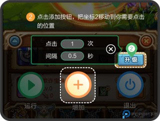 第二步:[按需]点击底部菜单中的增加按钮,在屏幕中将“2”移动到需要点击的位置