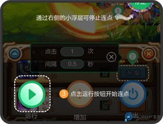 第三步:点击“运行”按钮后开始连点;可通过右侧的小浮层停止连点