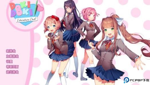 1、打开dokidoki文学部汉化版游戏,我们能够看到一个卡通可爱的游戏界面。