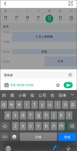 比如“今晚八九点寄快递”这个待办任务,可以直接点击切换到对应日期后,再点击20:00-21:00这个时间刻度后即可快速创建,无需再手动设置时间。