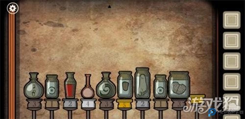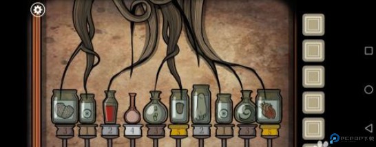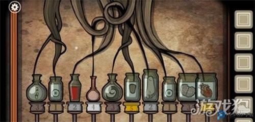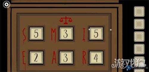 根据墙上的画J-1-舌头;F-3-毛发,这是两个已知的,进到门里面,我们根据密码柜子上的天平提示把所有的瓶子都放平,如图,这样我们就知道密码了,因为舌头=1舌头放在了数字5的托盘上,所以总和为6,6也是所有托盘数字+瓶子数字的重量,所以算出眼睛=I=S=5;脚=3=L;眼泪=2=E;牙齿=3=M;血=4=R;大脑=3=A,打开柜子获得最后的心脏(柜子里也提示了总和为6啊)
