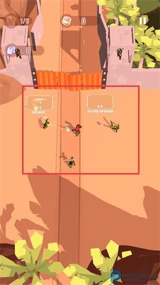 3、游戏屏幕上方有两个显眼的功能方块,一个可召唤雇佣兵,另一个可为自己加BUFF,助力生存挑战。