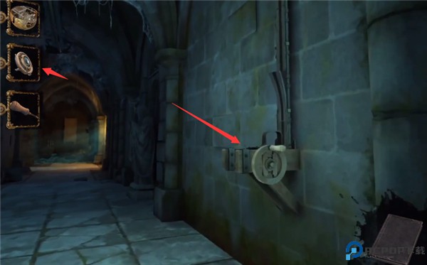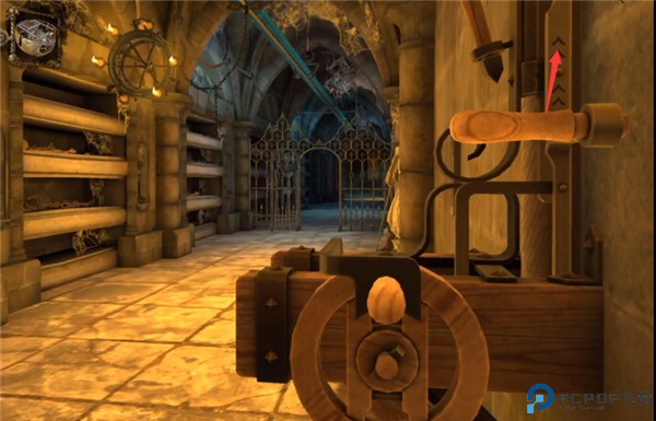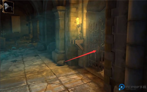 1、拿到把手工具后用把手工具打开面前的铁闸门并前进。