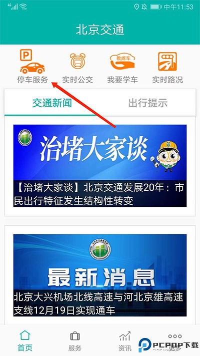 1、打开北京交通App,点击右上角的“停车服务”图标。