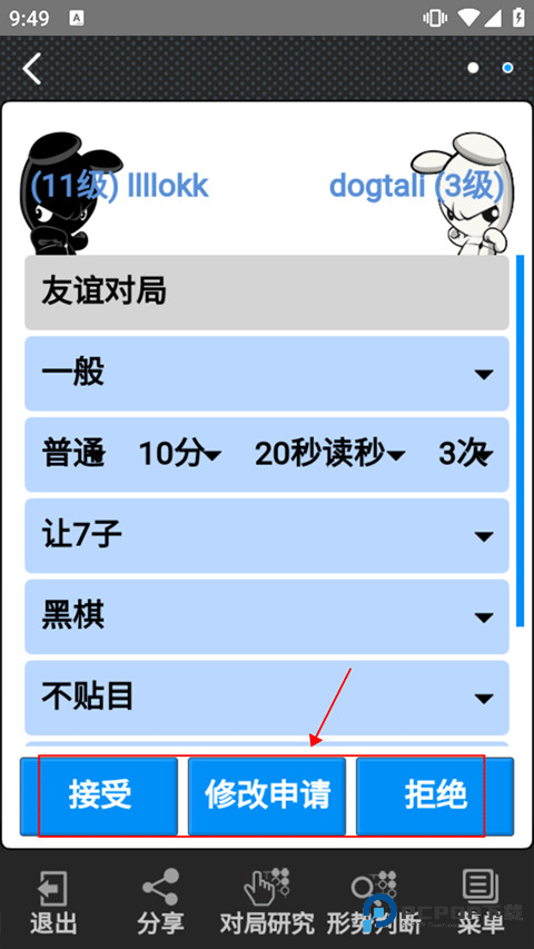 7、然后就轮到玩家选择,若同意点击接受即可,若不同意则点击拒绝或修改申请