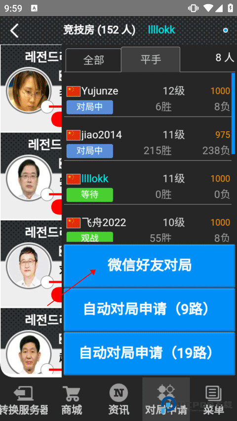 1、在app中打开对局申请界面,然后选择微信好友对局
