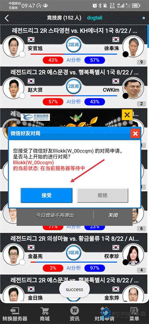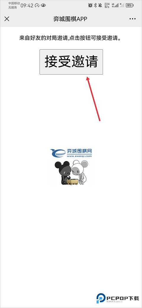 4、点击后会自动登录弈城围棋app,再点击接受按钮