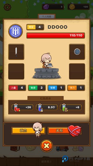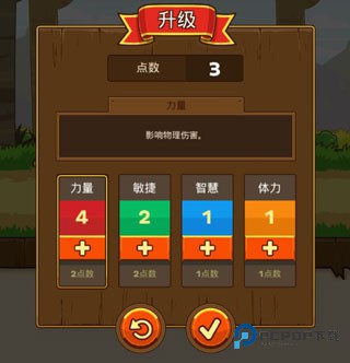 1、首先是加点:红色的是力量值,加物理攻击.顺便一提小骑士是没有魔法攻击的。绿色的是敏捷值,加暴击率和闪避几率。蓝色的是精神力,加魔法防御和战斗结束获得的经验值。橙色的加生命值.每次升级会自动增加一些,橙色加点是额外增加的.生命上限还关系到日后有治疗能力的冲锋技能和防御技能的回复量。