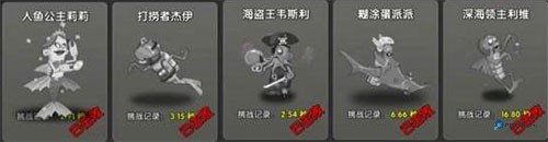 深水湖BOSS包括:人鱼公主莉莉(美人鱼首领)、打捞者杰伊(潜水首领)、海盗王韦斯利(海贼首领)、糊涂蛋派派(海星首领)、深海领主利维(炸鱼首领)。