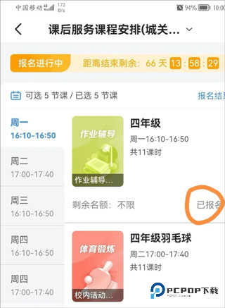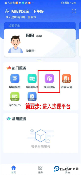 1、注册登录后,在首页中点击课后服务进入选课环节