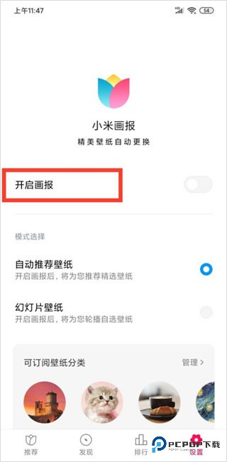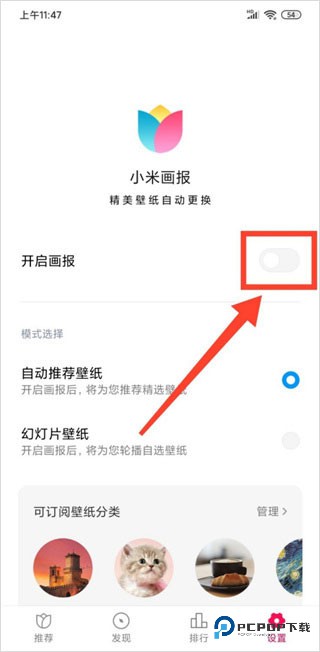 4、找到“开启画报”后,点击旁边的“开启键”画报就开启成功了。