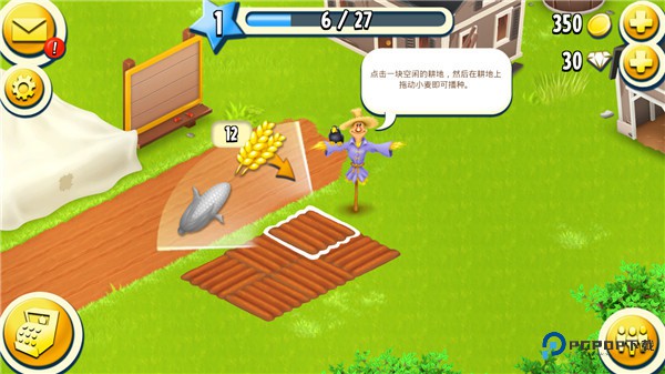 6、点击土地选择小麦种子,拖动小麦种子布满土地。