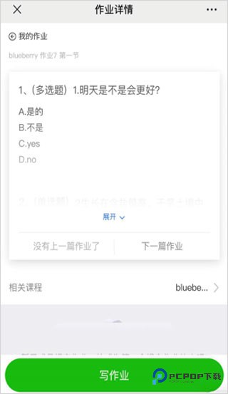 第二步:点击作业进入详情页,点击【写作业】按钮开始作业作答,做答完后点击【提交作业】按钮完成作业答题。