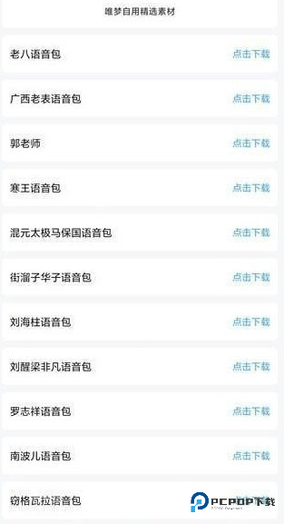 2、语音包可以看到有老八语音包、广西老表语音包、混元太极马保国语音包、罗志祥语音包等