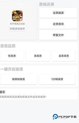 2、在【画质助手】页面,可点击【切换游戏版本】切换游戏版本,还能按需选择【还原画质】【还原音效】【修复文件】等操作。