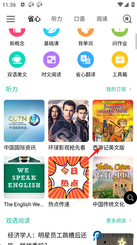 1、打开省心英语APP,在首页选择一本需要进行跟读的听力材料;