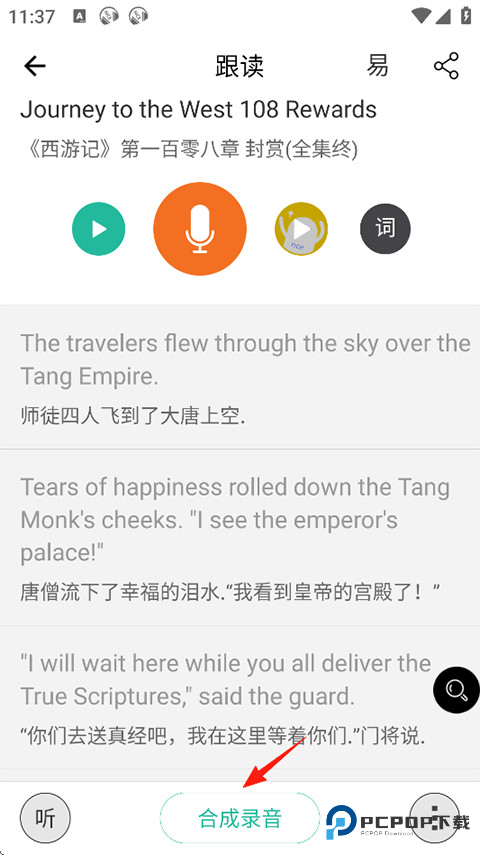 4、开始跟读,至少跟读两句及以上可合成录音。