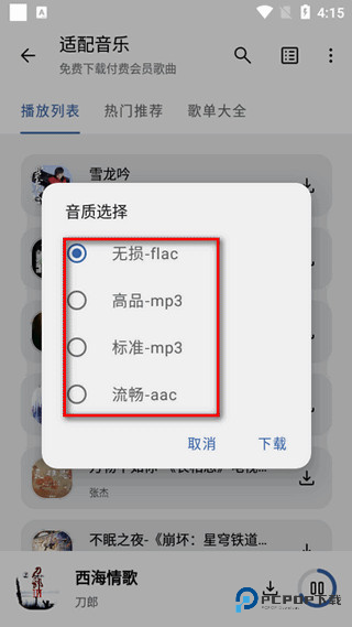 提供多种音质选择,包括无损音质、高品质、普通品质等,满足您的不同需求,支持批量下载,可快速下载专辑、歌单等。