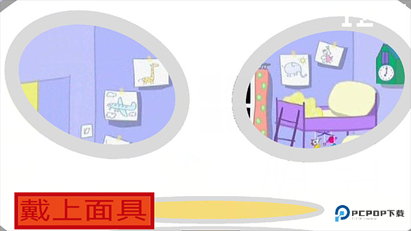 3、这时候要赶紧带上面具,野猪佩奇会爬上去;