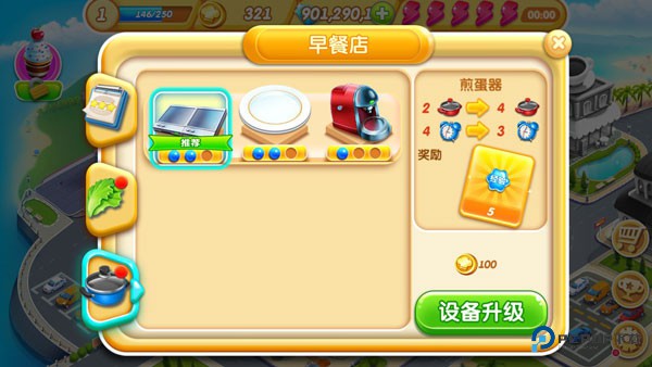 ※小技巧:先不要急着花金币升级。遇到过不去的关卡时再考虑金币升级,如食物生产慢就升级设备。