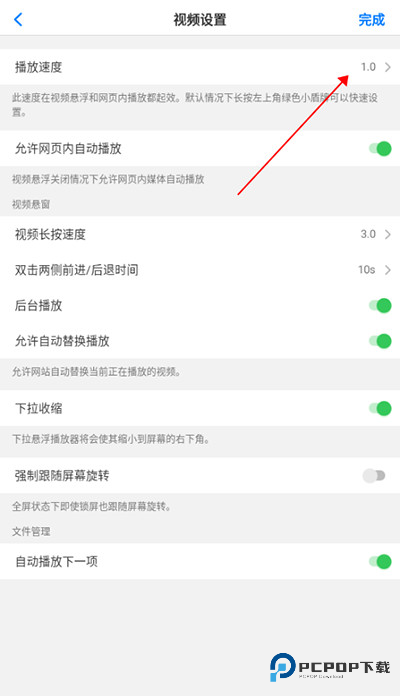 4、进入视频设置窗口,点击【播放速度】。