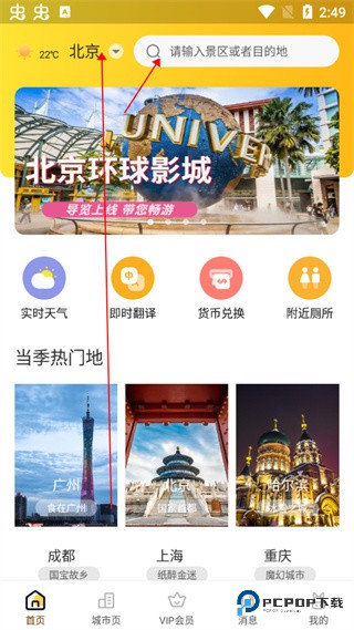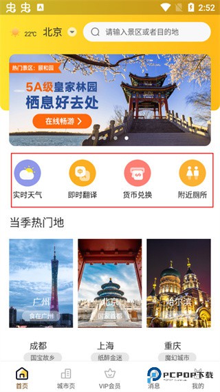 5、此外首页上还会给大家显示天气情况、周围厕所、即时翻译以及货币兑换,有需要的可以直接点击。