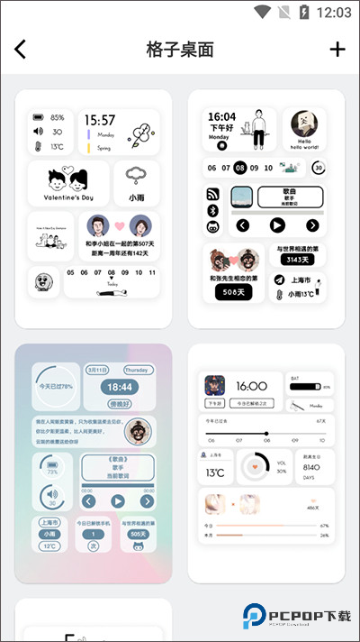 2、在【格子桌面】页面内,选择喜欢的手机桌面模版;