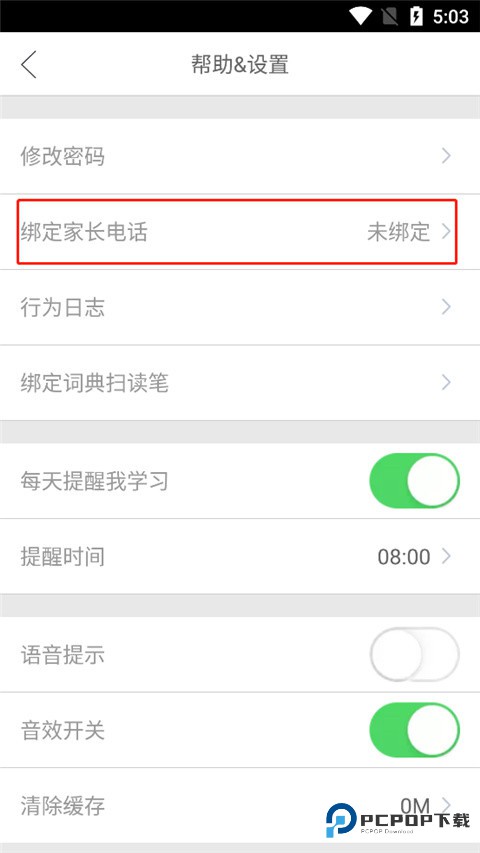 2、在设置中选择绑定家长电话;