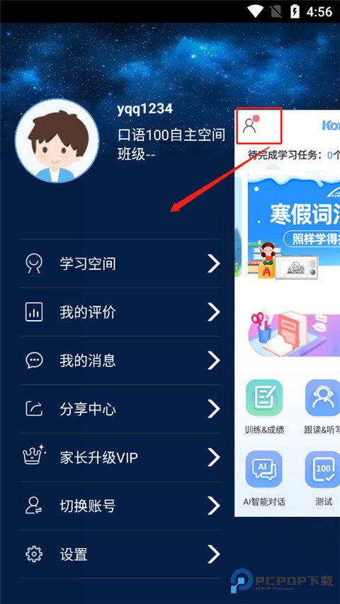 1、进入软件,点击左上角的头像,进入个人空间,在个人空间中,我们点击进入学习空间;