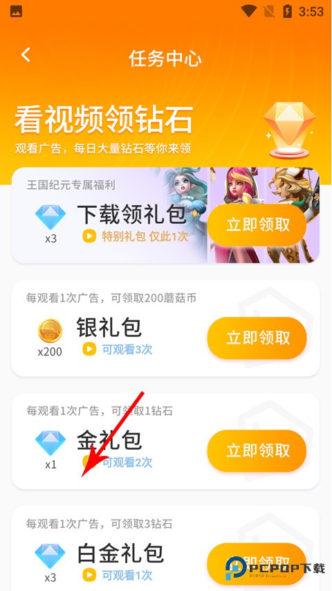 2、在主页下方有三个板块,分别是游戏、砖石商城、我的,点击进入到我的页面;