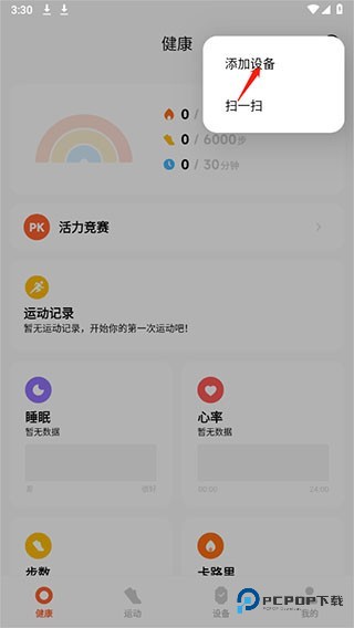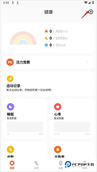 1、首先进入小米运动健康国际版,点击上方加号