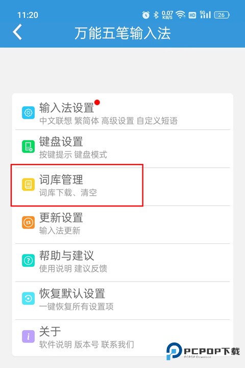 1、在万能输入法工具页面中,在下方找到【词库管理】,点击进入;