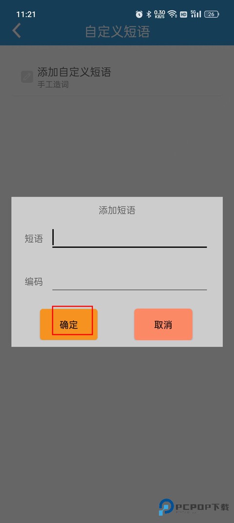 3、在其中添加你想设置的短语,然后填写编号,点击确定即可,下次想发送快捷短语的时候,直接输入编号即可。