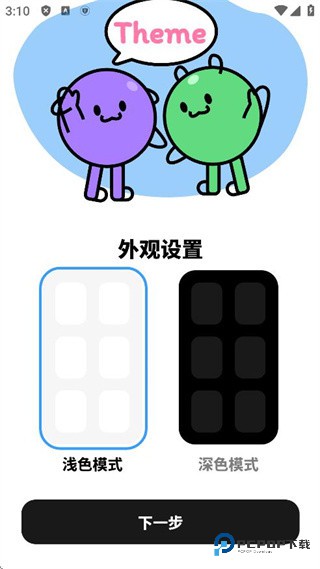 4、现在到外观设置了,我们选择浅色模式之后选择“下一步”;