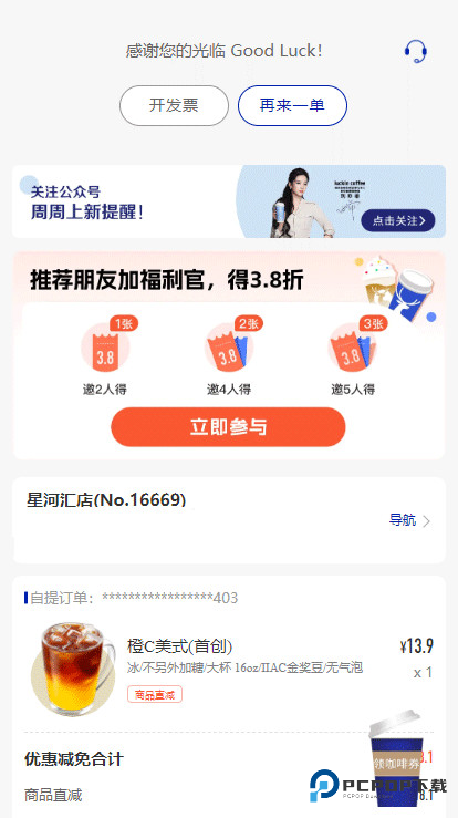 5、下单完成后到点出示取餐码进行扫码即可完成取单。