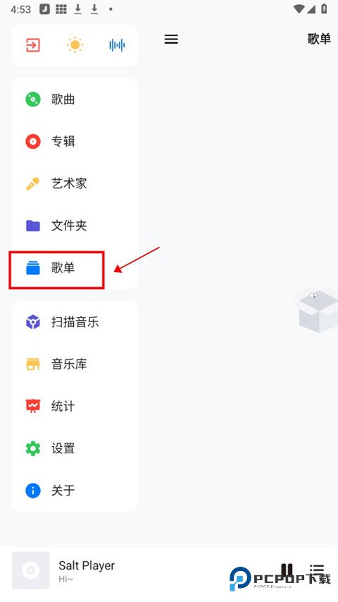 2、在展开的选项中,点击歌单;