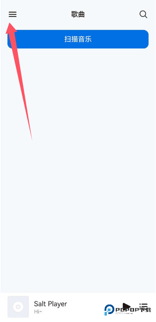1、进入椒盐音乐app,点击图中的左上角的功能;