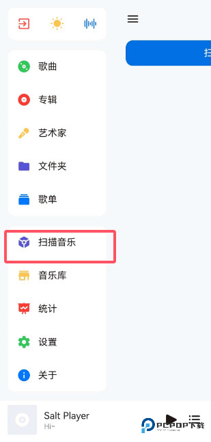 2、在左侧菜单栏中,找到【扫描音乐】,点击进入。