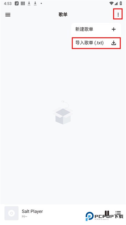 3、点击右上角的三个小点,点击导入歌单;