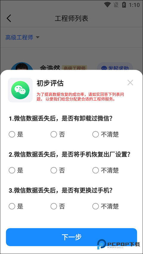 4、这边有一个初步评估,用户需要根据自身的实际情况选择即可了,然后就可以联系进行修复了。