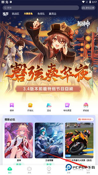 2、在首页中有着软件为你推荐的游戏,以及一些热门的活动: