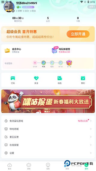 1、登入咪咕快游APP。