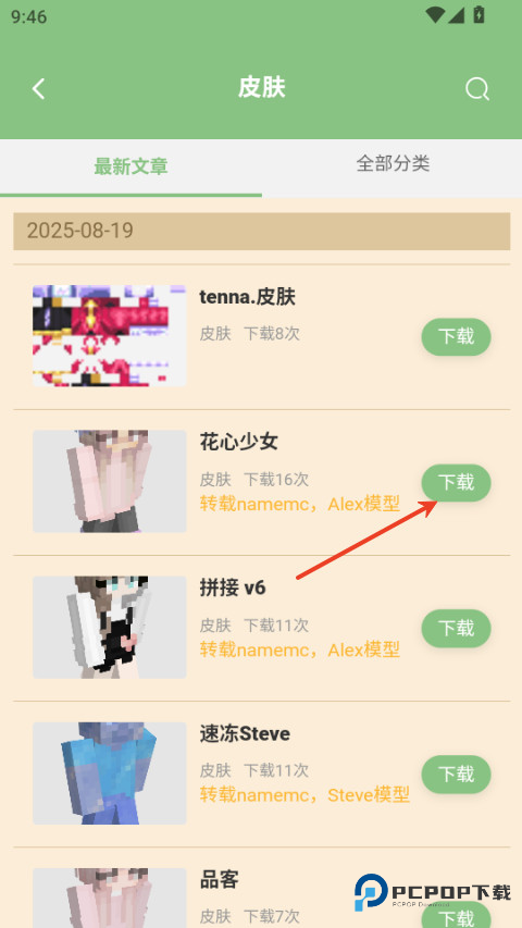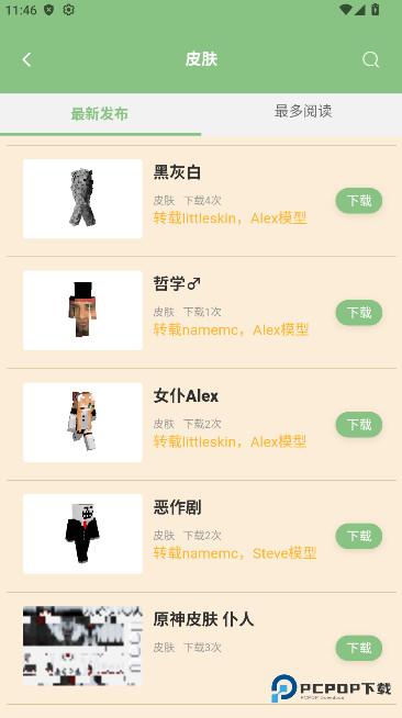 2、之后就会提供各种皮肤,你可以根据需求下载使用。