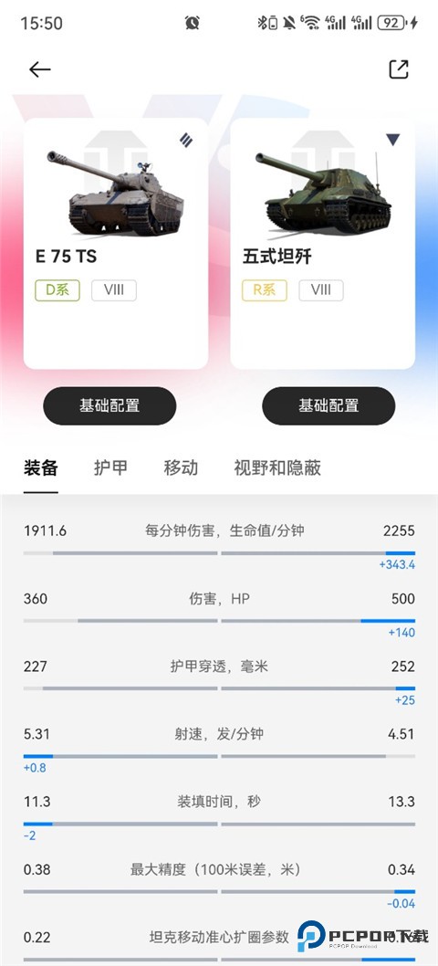 4、现在就可查看双方坦克的数据对比情况。