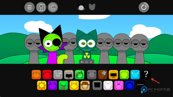 1、点击角色可激活,激活它们,也可使用数字键(1-9)切换音乐元素等。