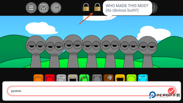 1、点击游戏上方的锁,输入pyramix即可解锁acid和tox。