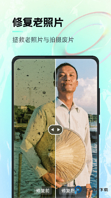 老照片修复:一键优化像素模糊、色彩褪色问题,自动识别破损区域并填充。高级消除笔:精准去除图片中杂物,通过AI算法智能补全背景,保持画面自然。时光相机滤镜:提供“复古胶片”“80年代电视风”等特效,模拟不同时代的拍摄质感。